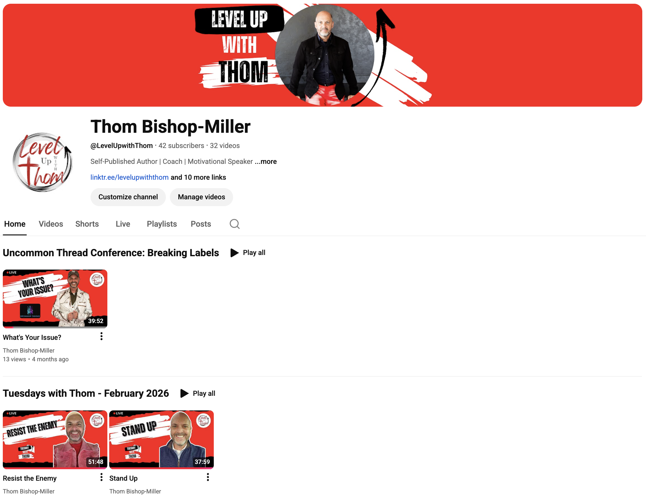 Developed a well-structured YouTube presence for Level Up with Thom, thoughtfully organizing videos, playlists, and resources so viewers can effortlessly find what interests them. This approach boosts engagement and maximizes reach across the platform.
